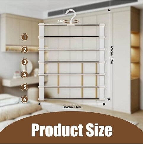 - 【Un design qui permet de gagner de la place】: Vous en avez assez de perdre de l'espace dans vos placards avec des cintres encombrants ? Notre cintre gain de place 7-en-1 permet d'économiser 80 % d'espace par rapport aux cintres traditionnels ! Parfait pour les petits placards, les appartements, les dortoirs ou les voyages, le cintre pour pantalon garde vos pantalons, jupes et accessoires bien organisés et sans encombrement.